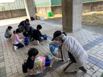 長寿会の方々と楽しく話をしながら活動に取り組んでいました。