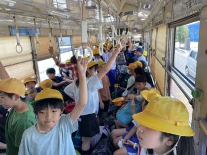5年生 宿泊学習 万葉線 公開日 2023/05/18 更新日 2023/05/18 5年生 高岡散策を終えて、万葉線で海王丸パークへ! 暑い中ですが、さすがスポーツタイムで鍛えているだけあって、元気です! 電車内はマナーを守ったり、他の乗客に席を空け譲ったりする、優しい姿で溢れています。