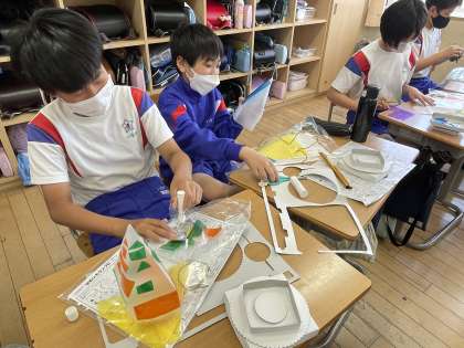 6年生 どんな風に光るかな? 公開日 2023/05/18 更新日 2023/05/18 6年生 図画工作科では「ゆめいろランプ」を作成中です!ほんのり光るランプに照らすと美しい作品になるように、試行錯誤しながらカラーセロハンやモールを貼っています。どんな作品になるか楽しみです!