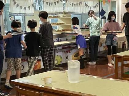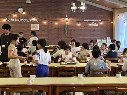 5年生 宿泊学習 夕食 公開日 2023/05/18 更新日 2023/05/18 5年生 砺波青少年自然の家に到着しました。入所式に後は、お待ちかねの夕食です。セルフサービスで美味しくいただきました。デザートのアイスは疲れを吹き飛ばすパワーがありました。