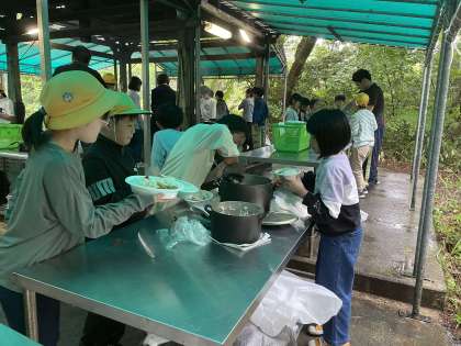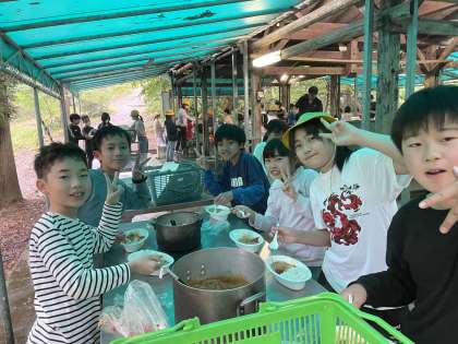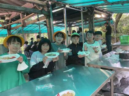 美味しいカレーライスの完成です。自分たちで協力して作ったカレーライスの味は格別です。