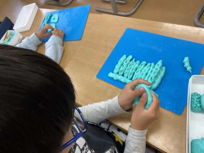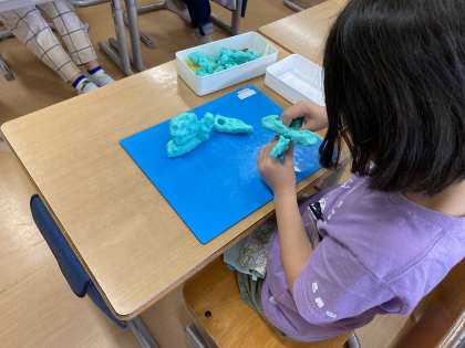 2年生 図工 にぎにぎねんど 公開日 2023/05/23 更新日 2023/05/23 2年生 図工の学習で粘土を使って作品づくりに取り組みました。子供たちは粘土をにぎる、指で跡をつける、つまむ、ねじる等しながら、思い思いの作品に仕上げていました。完成した作品はクロムブックで撮影して、作品カードにします。