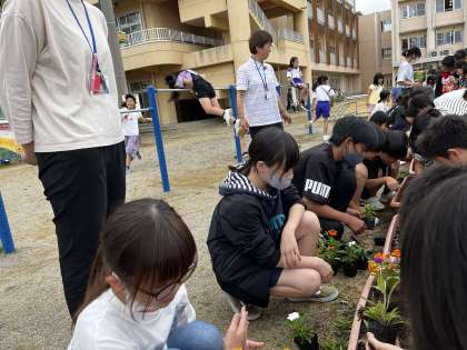 6年生 グリーンメイト 公開日 2023/06/13 更新日 2023/06/13 6年生 飼育栽培委員会の企画でグリーンメイト活動を行いました。委員会の担当の子供が、低学年等の参加者に花の植え方や水やりについて丁寧に教えていました。