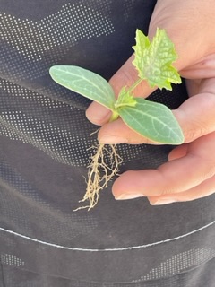 理科で育てているヘチマを、牛乳パックから畑に植え替えました。