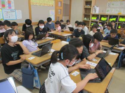 1年生 6年生といっしょに 公開日 2023/06/22 更新日 2023/06/22 1年生 体力テストや児童アンケートの回答の入力を、6年生のみなさんに手伝ってもらいました。優しい6年生のみなさん、いつもありがとうございます!