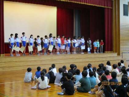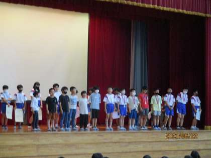 授賞式 公開日 2023/06/23 更新日 2023/06/23 最近の出来事 将棋や陸上、相撲、ミニバスケットで活躍していた子供たちの授賞式を行いました。たくさんの子供たちが、様々な場面でがんばっています。