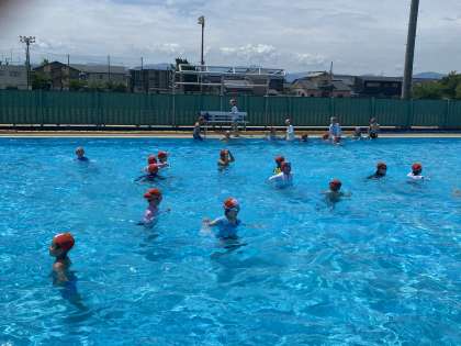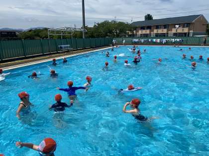 今年もプールの季節がやってきました。朝からプールに入るのが待ちきれない様子でワクワクしていた子供たち。青空の下に子供たちの弾ける笑顔が輝いていました!