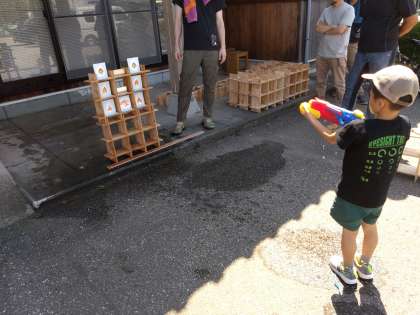 7/16の暑い中、的台や的も完成し、試し消火も行われました。