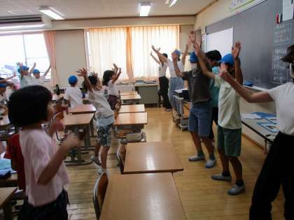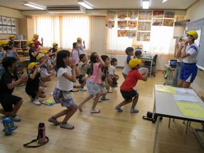 1〜5年生は、6年生の説明をよく見て聞いて、あっという間に覚えていました。何度も音楽に合わせて踊り、笑顔が広がりました。