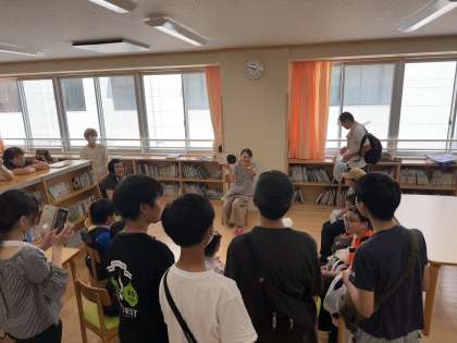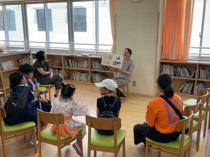 「速星小☆サマーフェスタ」を開催!(2) 公開日 2023/08/03 更新日 2023/08/03 速小ニコニコPTA お話の会のみなさんには、読み聞かせをしていただきました。興味津々に話を聴いている子供たちがたくさんいました。親子で一緒に話を聴く貴重な体験もできるよい機会にもなっていました。