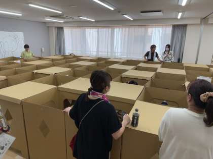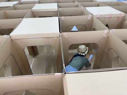 ダンボール迷路コーナーです。ただ迷路を楽しむだけでなく、途中の防災クイズに答えるという工夫もされていました。問題を解き、防災の大切さを学びながら楽しんでいました。