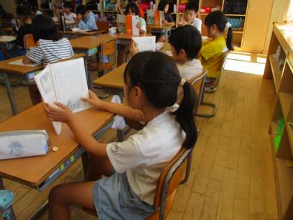3年生 国語 公開日 2023/09/29 更新日 2023/09/29 3年生 国語科「ちいちゃんのかげおくり」の学習では、範読を聞いたり、実際にかげおくりしたりして取り組んでいます。これから、場面を比べて読んでいきます。