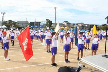 校舎改築工事を経て、今年度10年ぶりに学校のグラウンドで運動会を行いました。