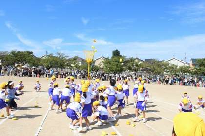 1、2年生の玉入れでは、「ダンシング玉入れ〜みんなで楽しくジャンボリー〜を行いました。