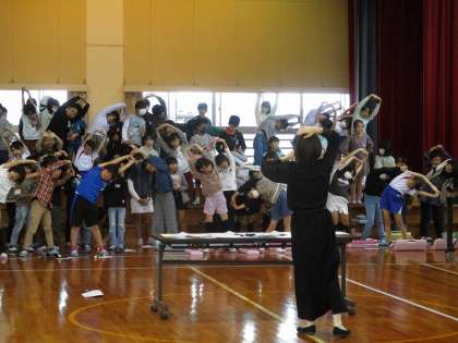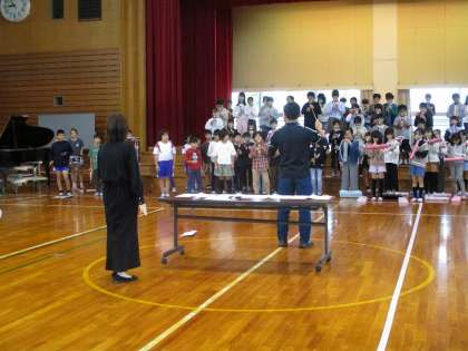 区域音楽会に向けて、速星中学校の音楽の先生を講師にお迎えし、指導していただきました。1限ということもあり、声がよくでるように身体を動かしました。強弱やスタッカートなど、合奏のアドバイスをたくさんしていただきました。