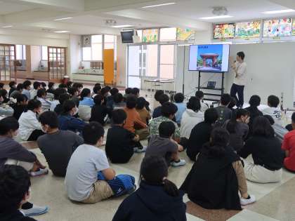 6年生 校外学習 in金沢 に向けて 公開日 2023/10/17 更新日 2023/10/17 6年生 11月の校外学習に向けて、子供たちが楽しく計画できるよう金沢の魅力や見学先について話をしました。金沢の名物に興味があるようで、海鮮丼の写真が出たときには目をキラキラさせていました。校外学習を楽しみにする子供が増えて、嬉しかったです!