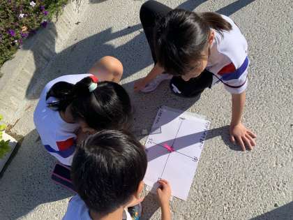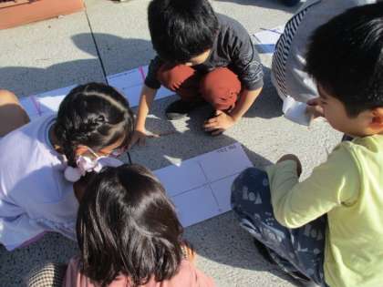 太陽がどのように動いているのかについて観察しました。班で時間分担をして、一人一人が責任をもって活動することができました。実験後、「太陽の動く方角が分かったよ!」と嬉しそうに話している姿が見られました。実験の結果をまとめるのが楽しみです!
