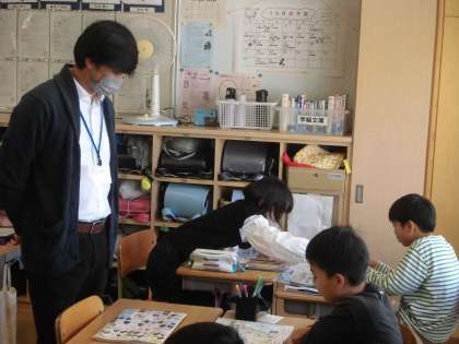 5年生 外国語科「道案内をしよう」 公開日 2023/10/26 更新日 2023/10/26 5年生 「Go straight」や「Turn right,Turn left」等の表現を使ってペアで道案内をし合いました。 どのペアも楽しく取り組むことができていました。
