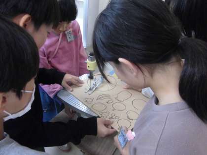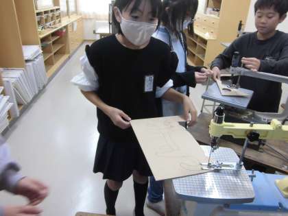 5年生 糸のこぎりを使おう 公開日 2023/10/26 更新日 2023/10/26 5年生 図画工作科の学習で伝言板を作成しています。 今日は糸のこぎりを使って形に合わせて板を切りました。 仲間同士で協力しながら取り組んでいました。 完成が楽しみです。