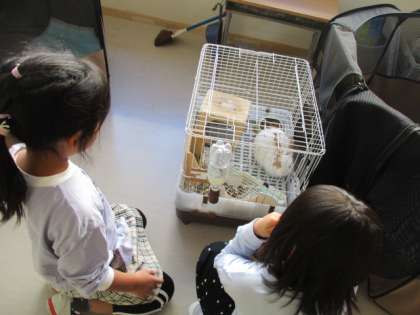 おうちの人に知らせたい物の動きを、じっと観察しています。様子がよく分かったかな?