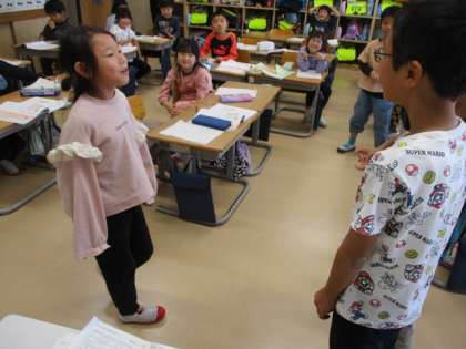 1年生 「ぼくは いかない」 公開日 2023/11/09 更新日 2023/11/09 1年生 道徳の授業で、善悪の判断について話し合いました。 登場人物になりきることで、友達の表情を見ながら気持ちを想像することができました。