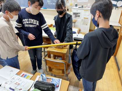 作用点にあるおもりの位置や、力を加える力点の位置を変えながら、「あ!ここだったらすごく軽い!」「さっきと違う!重たい!」と楽しく学習しました。