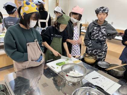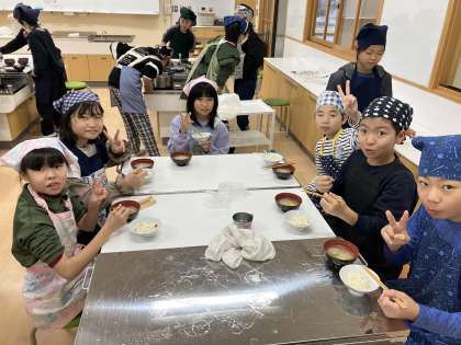 5年生 調理実習 公開日 2023/12/02 更新日 2023/12/02 5年生 家庭科の調理実習でお米を炊いたり、味噌汁を作ったりしました。 グループの仲間と協力しながら、手際よく作業を進めることができました。 「おいしい」と笑顔で食べていました。