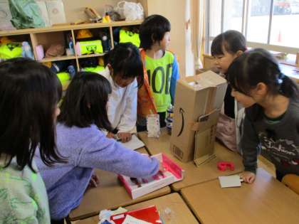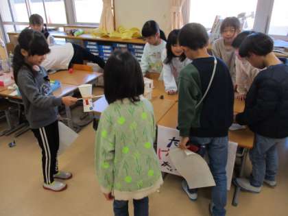 学年で交流しました。友達の作ったおもちゃを楽しみました。