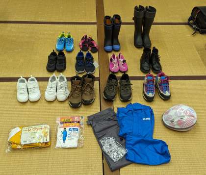 体操服、スニーカーや長靴、雨合羽、ランドセル、大リュック等