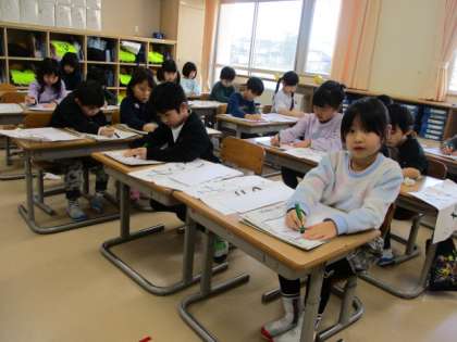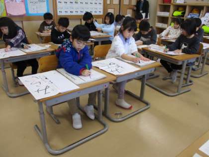 初めての書き初め大会でした。 練習の成果を発揮しようと、集中して仕上げました。