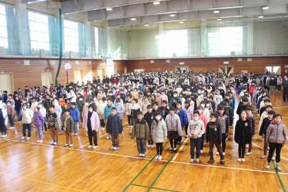 3学期始業式 公開日 2024/01/09 更新日 2024/01/09 最近の出来事 始業式に向けて、冬休み中に一台端末で担任からのメッセージを見たり、コメント覧に返信をしたりしました。地震による不安や心配もありましたが、子供たちは友達の顔を見て安心したようでした。 始業式では、校長先生から3学期は6つ目のS「SPEAK」に挑戦しよう、自分で考え、考えたことを友達に伝えることを大切に取り組もうとお話がありました。