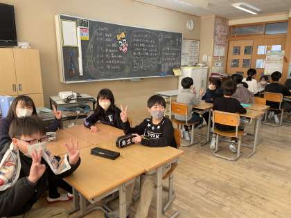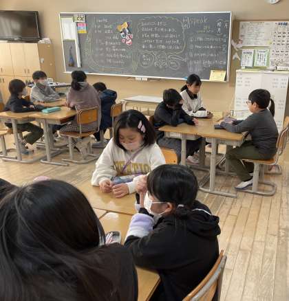 4年生 久しぶりに友達とおしゃべりタイム 公開日 2024/01/10 更新日 2024/01/10 4年生 学活の時間には、子供たちからトークテーマを募り、グループでたくさん話しました。 「初詣のおみくじで○吉だったよ」「うちのお雑煮の具は○○だよ」「家でかるたをしたよ」等々、盛り上がっている様子でした。友達の話を興味深く聞こうとする姿も印象的でした。