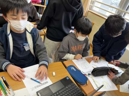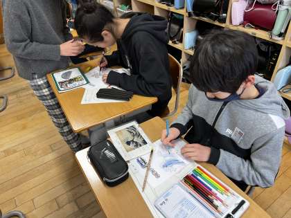 卒業に向けたカレンダーを1人1枚製作しています。数字だけではなく、学級の仲間に対するメッセージも書き、カウントダウンのときには自分の言葉で気持ちを伝える予定です。気持ちを込めてカレンダーを作成することができました。