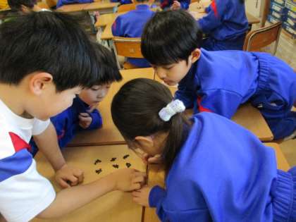 1年生 算数科「大きい数」 公開日 2024/01/17 更新日 2024/01/17 1年生 自分たちで育てたアサガオの種の数を班のみんなで数えました。10のまとまりをつくるなど、知恵を出し合い、分かりやすいように工夫して数えました。