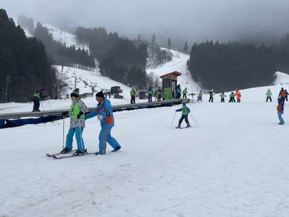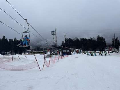 午後は、一時小雨の中の練習となりましたが、どんどん斜面に慣れていった子供たちは、ベルトコンベアやリフトに乗り、より高いレベルにチャレンジして滑っていました。