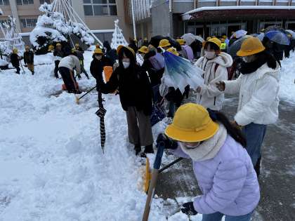 学校の玄関にたくさんの雪が積もっていました。登校した子供たちが雪かきをしてくれました。「いつも誰かがやってくれている」雪かき。その『誰か』になることができました。快く雪かきをしてくれた子供たちの姿が、とても誇らしかったです。