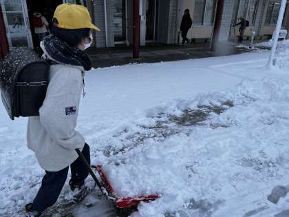 学校の玄関にたくさんの雪が積もっていました。登校した子供たちが雪かきをしてくれました。「いつも誰かがやってくれている」雪かき。その『誰か』になることができました。快く雪かきをしてくれた子供たちの姿が、とても誇らしかったです。