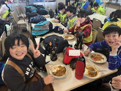 午前の部が終了しました。みんなで美味しいカレーをいただきます!