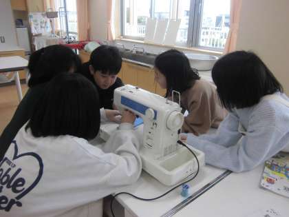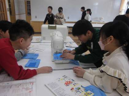 家庭科の時間にミシンを使う練習に取り組みました。