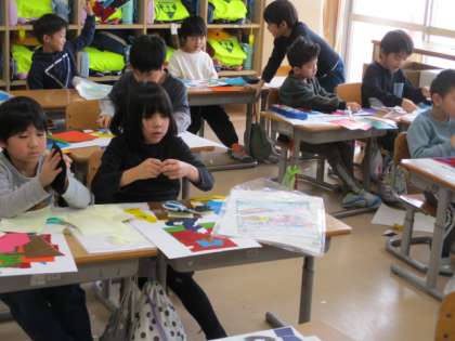 色とりどりのシールを切り貼りしながら、作業を進めています。
