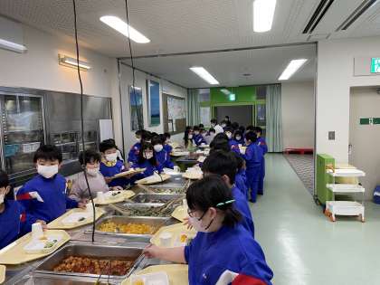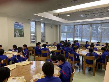 3年生 雪上体験3 公開日 2024/02/05 更新日 2024/02/05 3年生 たくさん動いた後は、食堂で昼食です。自分の食べる分だけ配膳することバイキング形式に戸惑いながら、楽しくそしておいしくいただきました。