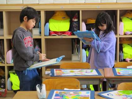 友達と作品を紹介し合いました。すてきなところを伝え合い、温かい気持ちになりました。