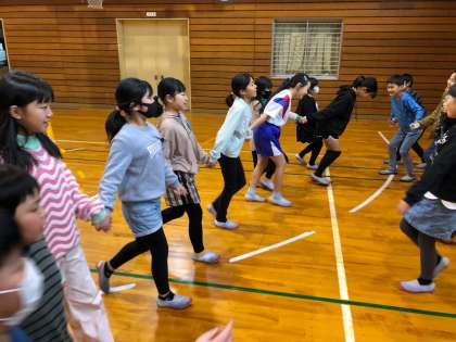 初めて話す仲間とも手を繋いだり、体をいっぱい動かしたりしながら、思い切り楽しんでいる様子でした。