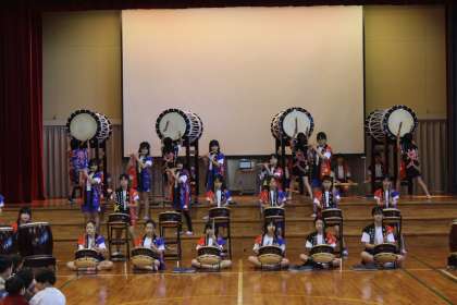 5年生のダンスを全校に発表しました。また、お囃子クラブの「立山つるぎ」の発表もありました。