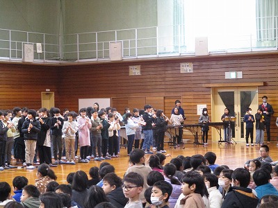 4年生の合奏から会がスタートし、6年生が入場しました。