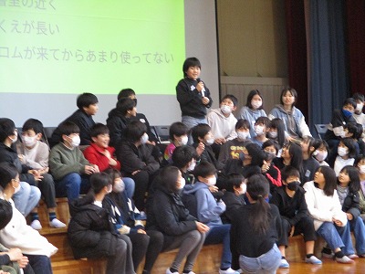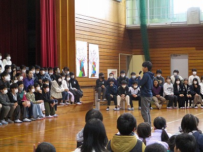 1年生から5年生が、6年生に感謝の気持ちを伝えようと発表しました。