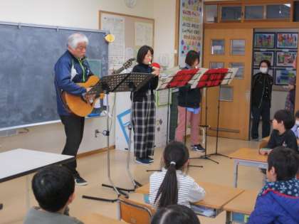 校長先生方に、すてきな演奏をしていただきました。思わず歌詞を口ずさむ、楽しい時間でした。嬉しかったですね。