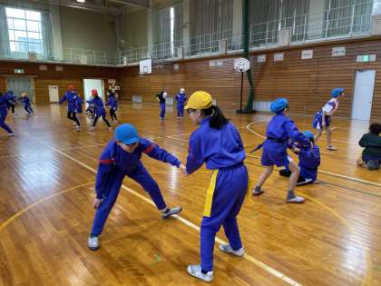 腰にタグをつけて取り合ったり、攻めと守りに分かれてタグを取られないようにしながらボールを運ぶゲームをしたりしています。