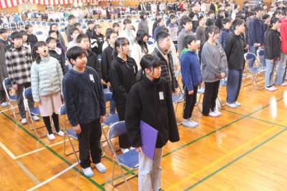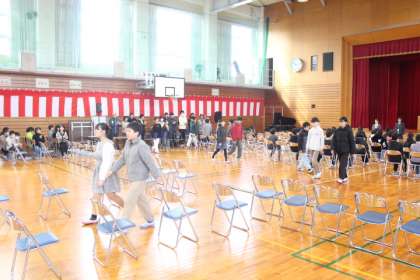 校歌斉唱、退場と練習しました。本番に向けて短い期間ですが、全校でよりよい式になるようにがんばります。