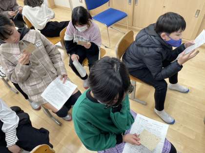 4年生 特別授業 富山大空襲について 公開日 2024/03/15 更新日 2024/03/15 4年生 富山大空襲についての特別授業がありました。今と当時の様子を写真で見比べて、被害の大きさを知りました。また、家族に宛てたはがきを見ながら、家族に会えない辛さや戦争の悲惨さについて考える子供もいました。